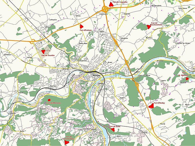 The Fort de Maizeret is one of nine forts built as part of the Fortifications of Namur in the late 19th century in Belgium. It was built between 1888 and 1892 according to the plans of General Henri Alexis Brialmont. Contrasting with the French forts built in the same era by Raymond Adolphe Séré de Rivières, the fort was built exclusively of unreinforced concrete, a new material, rather than masonry. In 1914 the fort was heavily bombarded by German artillery in the Battle of Namur. Maizeret was upgraded in the 1930s to become part of the fortified position of Namur in an attempt to forestall or slow an attack from Germany. It saw action in 1940 during the Battle of Belgium, and was captured by German forces. The fort is now abandoned on private property.