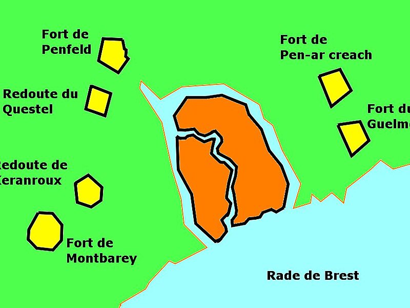 The Fort Montbarey is a fortified stronghold, built between 1777 and 1784, to the west of Brest. The fort is similar to the related Questel Fort.