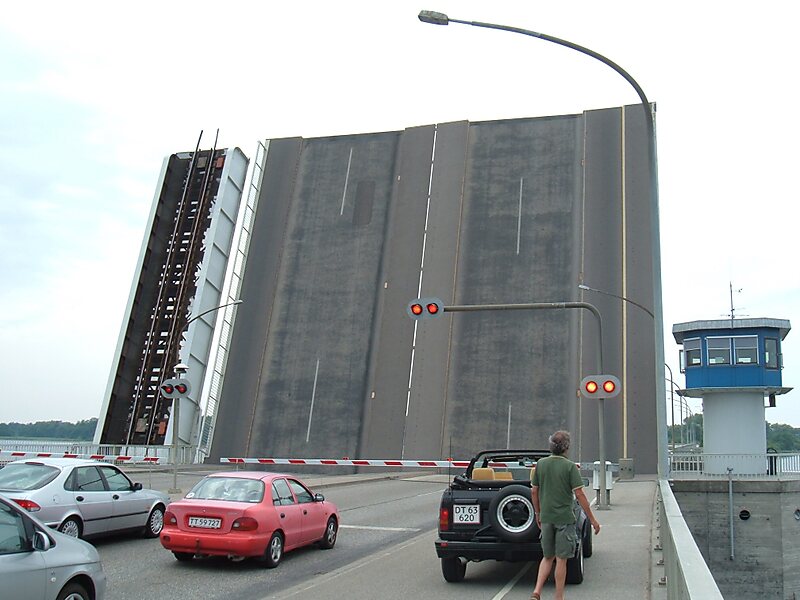 The bridge is 295 metres and 33.3 metres wide. It is a bascule bridge of beam design. The bridge carries four lanes of vehicle traffic and a single railway track.
