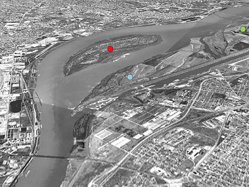 Gabaret Island, also known as Cabaret Island, situated approximately eight miles due north of the Gateway Arch in St. Louis, Missouri, and approximately one mile south of the confluence of the Missouri River and Mississippi River, is one of a cluster of three islands: Chouteau Island, Gabaret Island, and Mosenthein Island. Gabaret Island is 1,300 acres in area. Due to land development, the island is continuous with its northern neighbor, Chouteau Island, but is separated by a slough.Lewis and Clark camped on Gabaret Island on December 11, 1803, prior to establishing Camp Dubois near Wood River, Illinois.