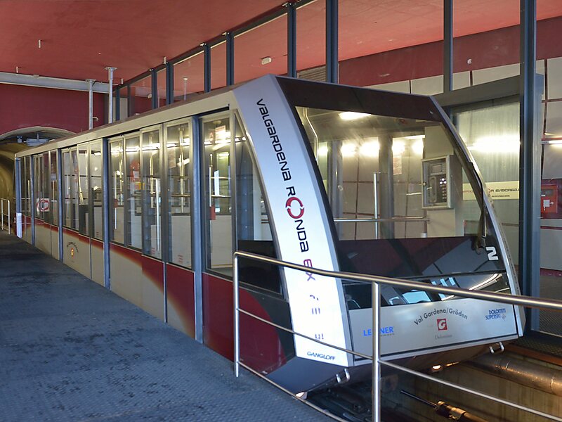 The Gardena Ronda Express is a funicular situated in the Val Gherdëina near Santa Cristina Gherdëina, connecting the Col Raiser lifts to the Sasslong/Ruacia and Ciampinoi lifts in northern Italy.