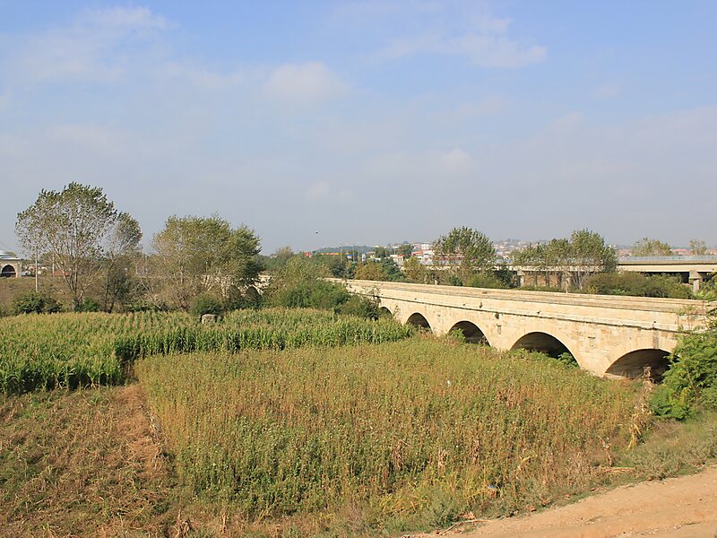 This arch bridge built by the Byzantines connects the banks of Tundzha river. Impressive monument to the past.