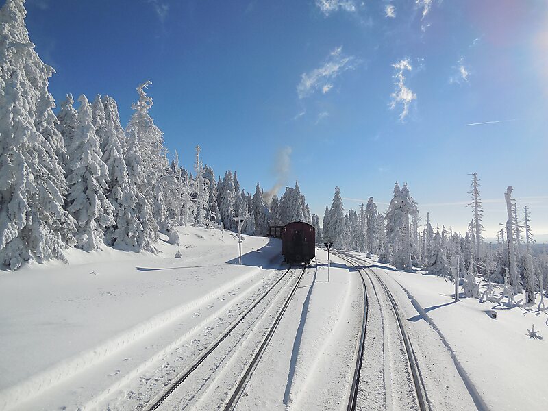 Goetheweg station is located between the stations of Schierke and Brocken on the Brocken Railway in the Harz Mountains of Central Germany at a height of 956 m above sea level. The track layout today consists, as in the past, of a horizontal reversing track and just one turnout, whilst the running line maintains its continuous gradient of 33 permille.