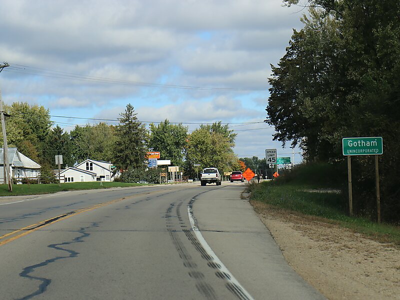 Gotham is a census-designated place, in the town of Buena Vista, in Richland County, Wisconsin, United States. It is located at the intersection of Wisconsin Highway 60 and U.S. Route 14. It is just north of the Wisconsin River, northeast of Avoca and southeast of Richland Center. As of the 2010 census, its population was 191.