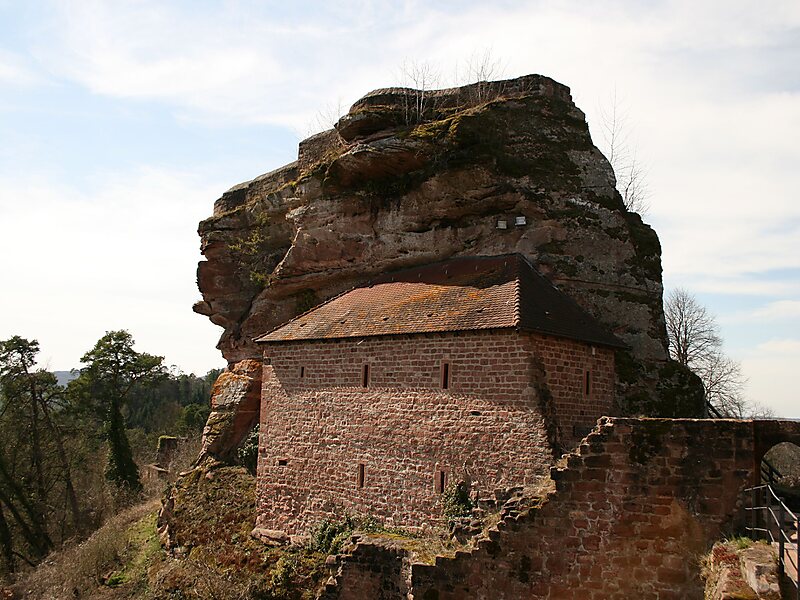 Grafendahn Castle lies in the southern Palatine Forest, the German part of the Wasgau region, just under 1 kilometre east of the small town of Dahn in the state of Rhineland-Palatinate.