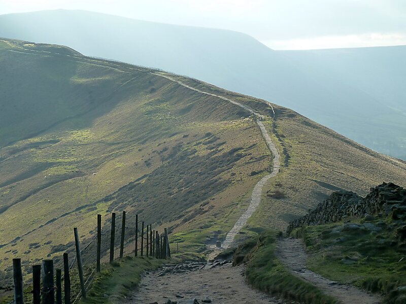 There are three well-used paths on both sides of the ridge leading to Hollins Cross. The path west of Hollins Cross is a gentle climb on a paved path of around one kilometre to the summit of Mam Tor.