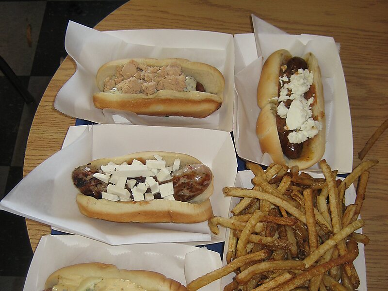 Hot Doug's was a Chicago, Illinois-based restaurant specializing in a variety of hot dogs and sausages. The self-proclaimed "Sausage Superstore and Encased Meat Emporium" was in its second location at 3324 North California Avenue in the city's Avondale neighborhood before it closed on October 3, 2014. Its first location, on Roscoe Street, closed after a 2004 fire. Hot Doug's was frequently featured in local and national media for its unique menu, and its purveyor and head chef, Doug Sohn, has been noted for his work to create affordable gourmet food. The restaurant was an extremely popular dining destination among both locals and tourists, and at lunch time and throughout much of the weekend customers could expect to wait in lines sometimes exceeding an hour just to get in the door.