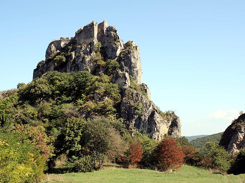 Dramatic landscape and a strategic point. The ruins of once a famous fortress are hidden in the forest. Hike up the hill for million dollar views.