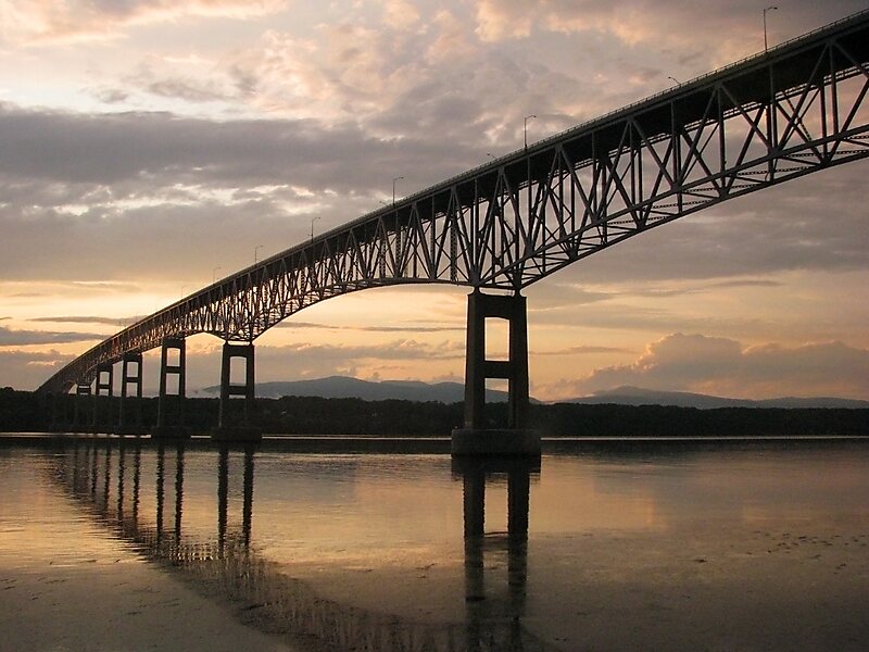 The bridge, owned by the New York State Bridge Authority, carries two lanes of traffic and approximately 17,000 vehicles per day. It was designed by David B. Steinman and the builders were Harris Structural Steel and Merritt-Chapman & Scott Corporation, and is the second northernmost, and second newest, of the five bridges that NYSBA owns and operates. The bridge has two main spans, since there is an east and west channel in the Hudson River at this point.