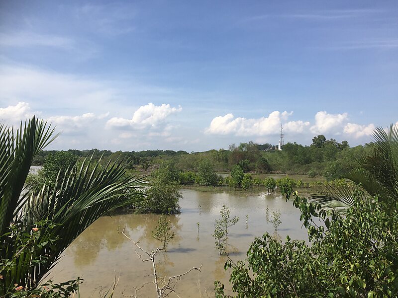 With a total area of 2.4 km2, the park is a combination of secondary forest and wetland with a man-made coastal bund separating the wetland from the forest. Inside the park itself is a large pond surrounded by another bund. A water lock connecting the pond with the river controls the water level of the pond.