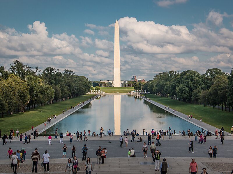 Designed by Henry Bacon in 1923, this enormous reflecting pool is more than 600 meters long and 50 meters wide. Its surface can reflect both the Lincoln and Washington memorials. A tinted bottom was added to enhance the reflection. The area has been the site of many important historical events, such as Obama Inaugural Celebration.
