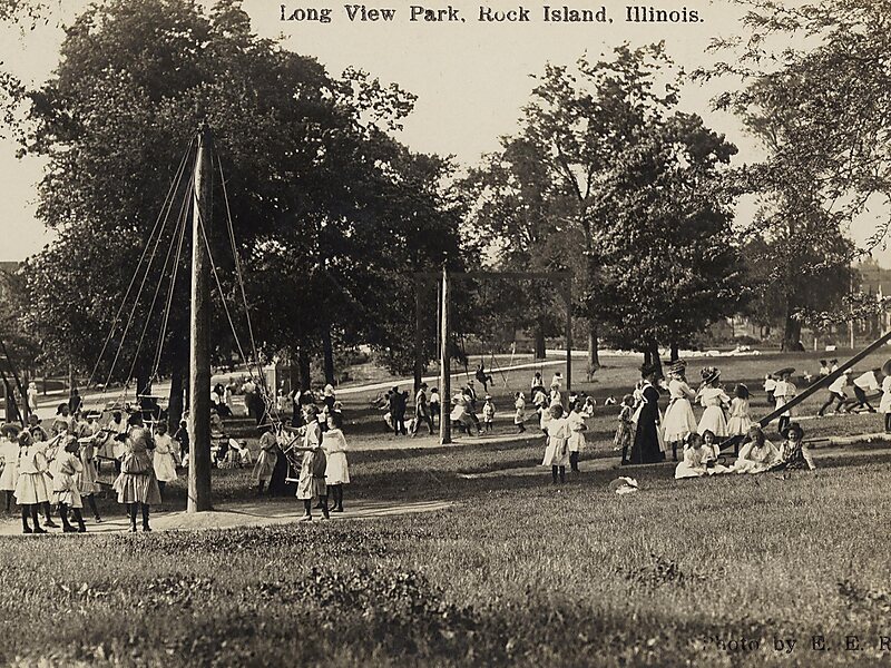 The park includes a conservatory, greenhouse, flower gardens, playground equipment, picnic shelters, volleyball pit, swimming pool, tennis courts, and walking paths. The park's disc golf course is considered one of the best in the Quad Cities.