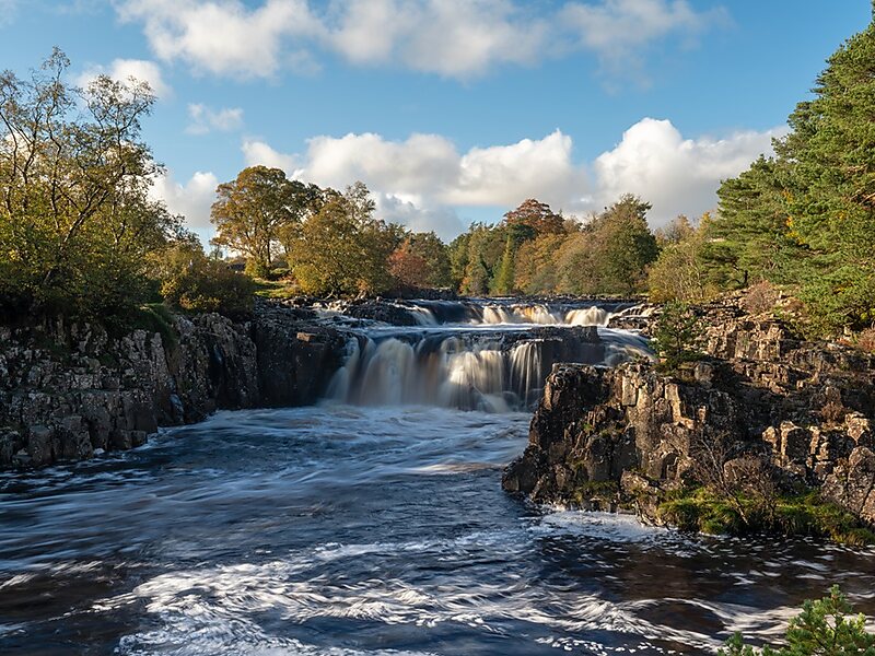 Low Force is an 18-foot high set of falls on the River Tees, England, UK. Further upstream is the High Force waterfall. Low Force is also the site of the Wynch Bridge, completed in 1830. It is suggested by signs at each end that only one person at a time should cross the bridge as it may be unstable.