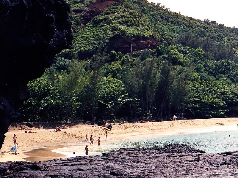 Lumahaʻi Beach is a beach on the north shore of Kauai, Hawaii. Situated at the mouth of Lumahaʻi River, is accessed along Hawaii Route 560 near Wainiha, between Hanalei and Haʻena State Park. Due to strong waves, currents and undertow, the beach and bay are considered unsafe for swimming and surfing most of the year. Breadfruit trees are said to have been planted here by a Menehune named Weli. Lumahaʻi Beach was featured in the 1958 film South Pacific.