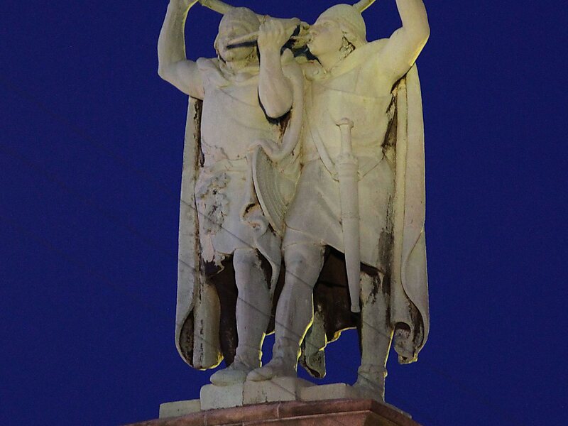 The Lur Blowers is a monument located next to City Hall in Copenhagen, Denmark, consisting of a bronze sculpture of two lur players mounted on top of a tall terracotta column. The monument was a gift to the City of Copenhagen from the Carlsberg Foundation and New Carlsberg Foundation on the occasion of the centenary of the birth of Carlsberg founder J. C. Jacobsen.