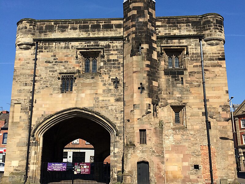 The Magazine Gateway is a Grade I listed building in Leicester. Now a solitary landmark alongside Leicester ringroad, it was originally the main gateway of a walled enclosure built around 1400, giving access to the religious precinct of The Newarke. The vaulted archway was open to traffic until 1905. The gatehouse rooms were variously used as a porter's lodge, guest accommodation, prison, militia building, and regimental museum. It is now a building managed by the Leicester Museum Service, and is generally only open to the public by arrangement.