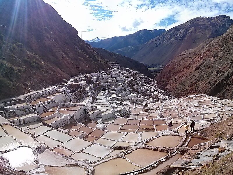 Maras is a town in the Sacred Valley of the Incas, 40 kilometers north of Cusco, in the Cusco Region of Peru. The town is well known for its salt evaporation ponds, located towards Urubamba from the town center, which have been in use since Inca times. The salt-evaporation ponds are four kilometers north of the town, down a canyon that descends to the Rio Vilcanota and the Sacred Valley of the Incas. There are over 5,000 salt ponds, some owned by families and others unused.