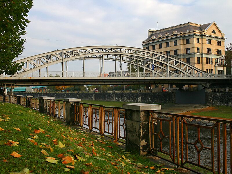 By the bridge stands a monument dedicated to Ostrava's hero Miloš Sýkora who was shot by the Nazis while saving this bridge.