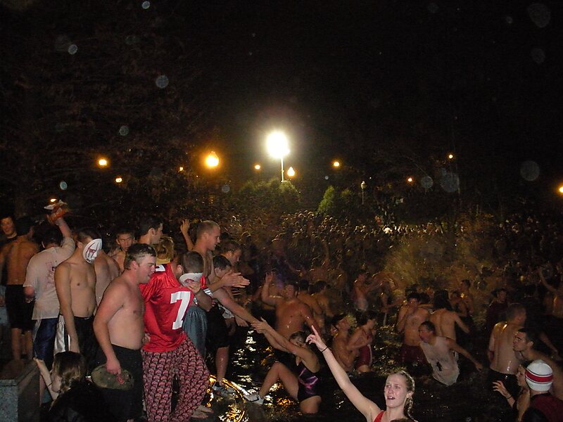 Mirror Lake is a pond on the campus of The Ohio State University in Columbus, Ohio. Visitors, students, faculty, and staff enjoy the fountains that run in spring, summer, and autumn.