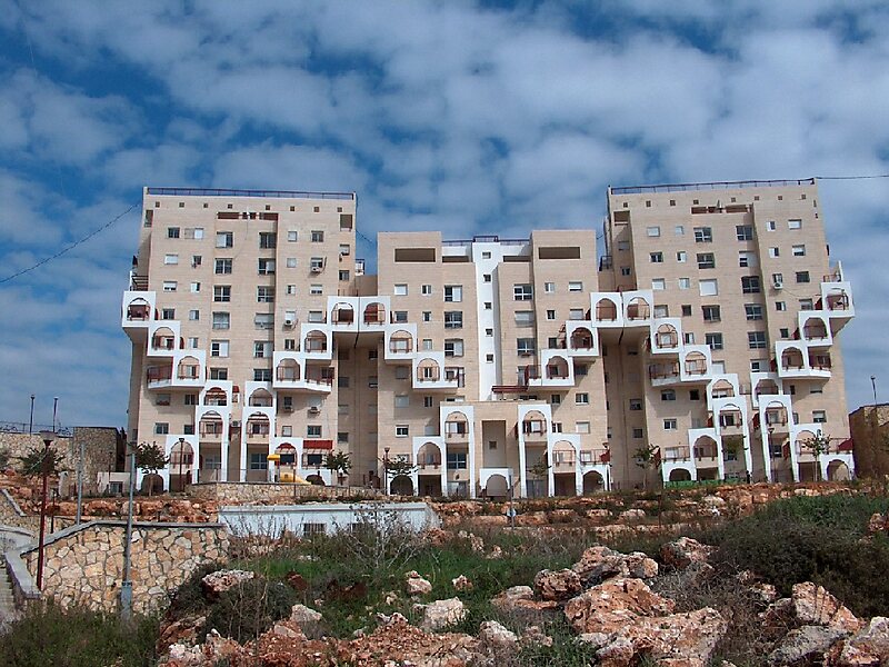 Modi'in Illit is a Haredi Israeli settlement and city in the West Bank, situated midway between Jerusalem and Tel Aviv. Modi'in Illit was granted city status by the Israeli government in 2008. It is located six kilometres northeast of Modi'in-Maccabim-Re'ut and is often referred to as Kiryat Sefer, the name of its first neighborhood, established in 1994. It was built on the land of five Palestinian villages: Ni'lin, Kharbata, Saffa, Bil'in and Dir Qadis. Modi'in Illit encompasses the neighborhoods of Kiryat Sefer and Achuzat Brachfeld. In 2019 it had a total population of 76,374, making it the largest Jewish settlement in the area.The international community considers Israeli settlements illegal under international law, but the Israeli government disputes this.