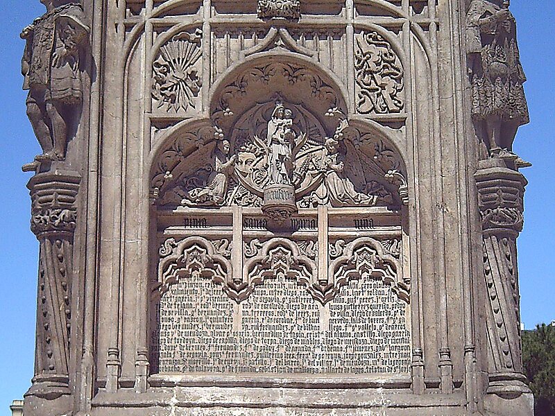 The Monument to Columbus is a monument in Madrid, Spain. It lies on the namesake square, the Plaza de Colón. The basement of the monument is a Gothic revival work by Arturo Mélida while the topping statue is a work by Jerónimo Suñol.