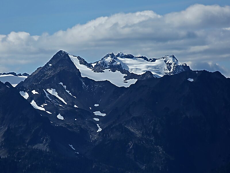Mount Carrie is a 6,995-foot mountain summit located within Olympic National Park in Clallam County of Washington state. Mt. Carrie is the highest point in the Bailey Range which is a subrange of the Olympic Mountains. With a good eye and clear weather, the mountain can be seen from the visitor center at Hurricane Ridge. Its nearest higher peak is Mount Mathias which is an outlier of Mount Olympus, 6.24 mi to the south. Due to heavy winter snowfalls, Mount Carrie supports the Carrie Glacier in its northeast cirque, and Fairchild Glacier on the east slope. Precipitation runoff from the mountain drains into tributaries of the Elwha River and Hoh River. There is a scrambling route via the High Divide Trail and Cat Walk.