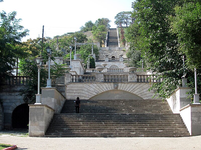From the top of Mount Mithridat a scenic view spreads across the Strait of Kerch and the city of Kerch. Sometimes it is possible to see the Caucasus shore.
