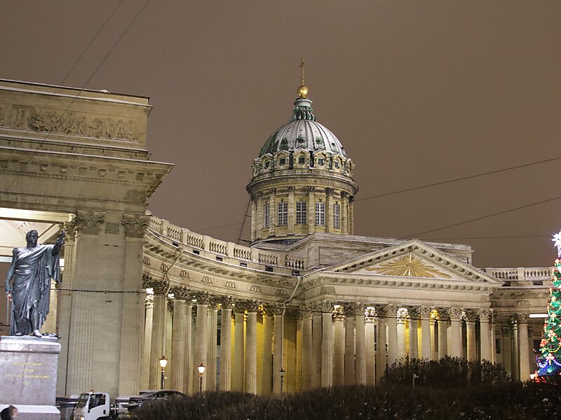 Places of interest include the Kazan Cathedral, the Merchant Court, the Apraksin Dvor, the Alexandrinsky Theatre, and the Saint Petersburg City Duma.
