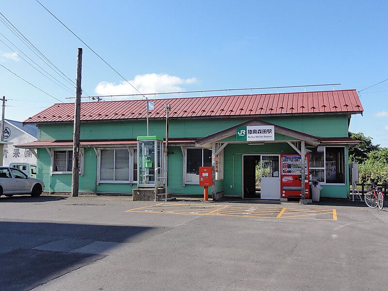 Mutsu-Morita Station is a railway station located in the city of Tsugaru, Aomori Prefecture, Japan, operated by the East Japan Railway Company. The station is a kan'i itaku station, administered by Goshogawara Station, and operated by Tsugaru municipal authority, with point-of-sales terminal installed. Ordinary tickets, express tickets, and reserved-seat tickets for all JR lines are on sale.