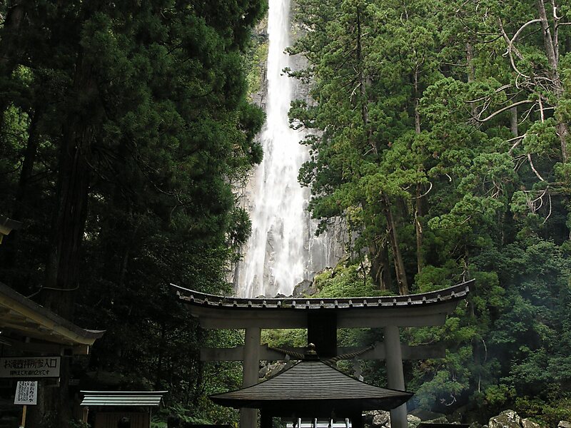 There are two rocks at the top of the falls that are the guardian kami of the falls and the Shinto shrine. There was also a Buddhist temple here that was destroyed during the Meiji Restoration. Many shugenja and star-crossed lovers have leaped from the top of the waterfall in the belief that they will be reborn into Kannon's paradise.