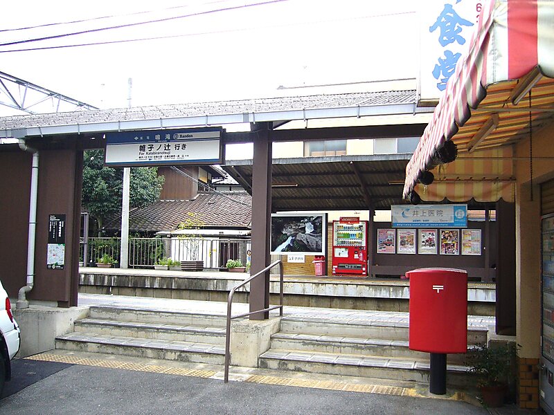 Narutaki Station is a tram stop in Ukyo-ku, Kyoto, Japan. The station is serviced by the Randen Kitano Line that begins at Katabiranotsuji and continues to Kitano-Hakubaichō.