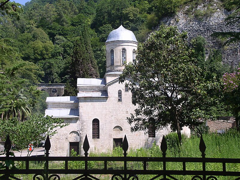New Athos or Akhali Atoni (Georgian: ახალი ათონი, Akhali Atoni; Abkhazian: Афон Ҿыц, Afon Ch'yts; Russian: Новый Афон; Novy Afon, is a town in the Gudauta raion of Abkhazia situated some 22 km from Sukhumi by the shores of the Black Sea. The town was previously known under the names Nikopol, Acheisos, Anakopia, Nikopia, Nikofia, Nikopsis, Absara, and Psyrtskha.