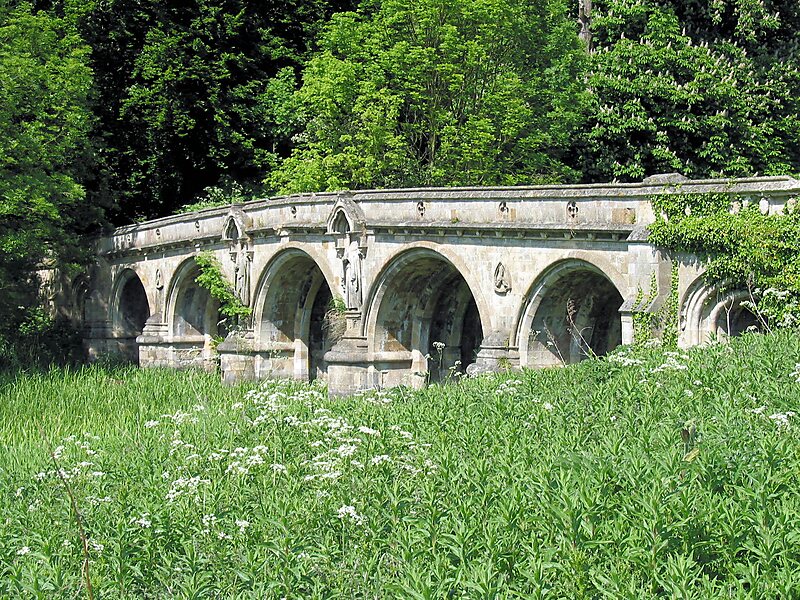 Newsham Bridge is a Grade I listed structure in Brocklesby Park, part of the estate of the Earls of Yarborough in West Lindsey, Lincolnshire, England. Constructed around 1772 in the Gothic Revival style, it is probably the work of Lancelot "Capability" Brown, who at that time redesigned some features of the estate, including Newsham Lake, over which the bridge passes. Many sculptural details of the bridge are broken or defaced, and it is currently listed on English Heritage's Heritage at Risk Register.