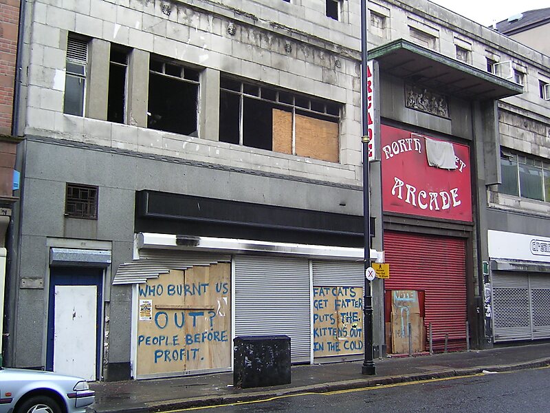 The North Street Arcade is a 1930s Art Deco shopping arcade in the Cathedral Quarter of Belfast, Northern Ireland. It is the only example of a shopping arcade from this decade in Northern Ireland, and is one of only a handful left in the whole of the UK. A Grade B1 listed building, it has been derelict since a fire in 2004.
