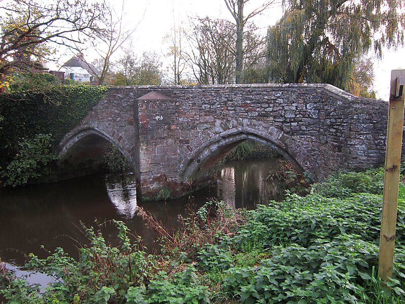 Bradford Bridge in Bradford on Tone in the English county of Somerset carries a road over the River Tone. It was built at some point between the 13th and 15th centuries and has been designated as a Grade II* listed building and scheduled as an ancient monument.By 1667 it had been adopted as a "County Bridge". A marker stone was installed to show the area on either side of the bridge which was the responsibility of the local Justices of the Peace. It can still be seen near the White Horse Inn.The two arch stone bridge was restored in 1698 and again in the late 19th century.In 2000 a lorry went through the parapet of the bridge.