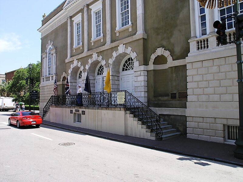 The Old Exchange & Provost Dungeon, also known as the Custom House, and The Exchange, is a historic building at East Bay and Broad Streets in Charleston, South Carolina. Built in 1767–1771, it has served a variety of civic institutional functions, including notably as a prisoner of war facility operated by British forces during the American Revolutionary War. The building was designated a National Historic Landmark in 1973. It is now a museum operated by the Daughters of the American Revolution.