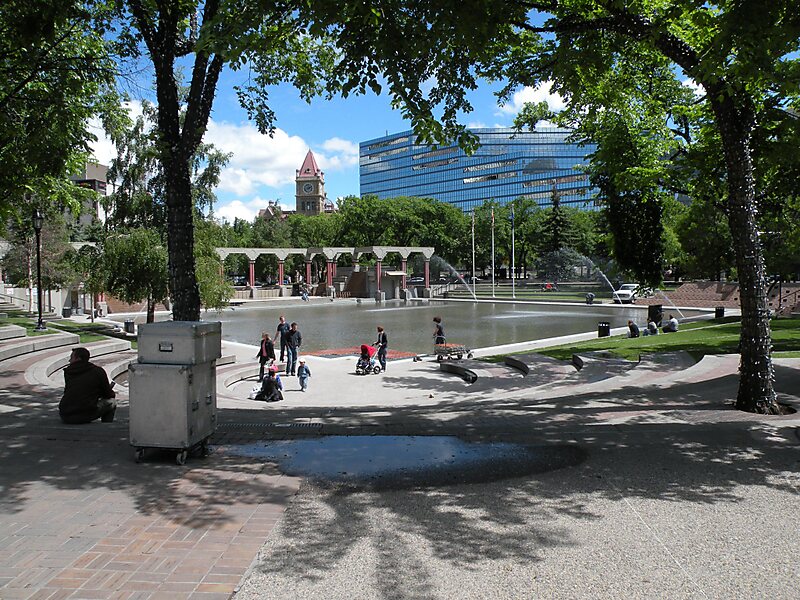 Olympic Plaza serves as a meeting place, and an outdoor event area, hosting concerts and festivals. In the winter, it is used as a public ice skating area. The plaza is accessible by Calgary's CTrain system at the City Hall station.