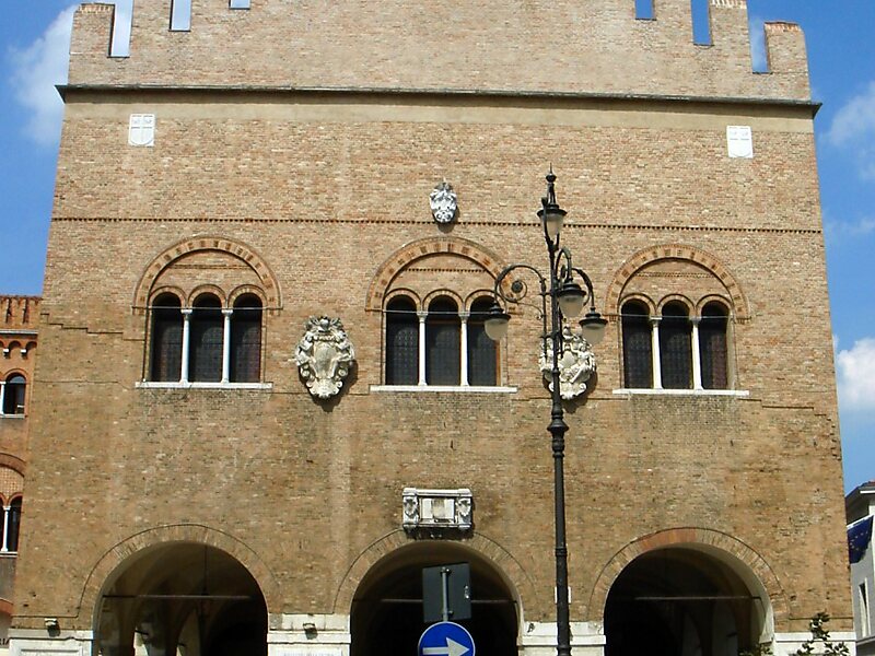 The palace was erected in the 13th and 14th centuries, as the seat of the Maggior Consiglio, the main administrative council in the city. It was designed by the venetian architect Gabriele Saccon. Built in brickworks, it has two floors, the lower one entered through a loggia. The upper floor has three triple mullioned windows.