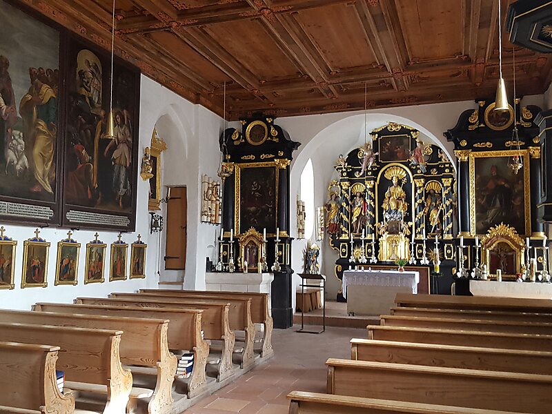 Petersberg is a mountain in the Flintsbach municipality of Bavaria, Germany. Situated in the eastern foothills of the Mangfall Mountains, some 400 meters above the Inn valley, it is noteworthy for its medieval monastery of Saint Peter's on the Madron, the church of which however retained its importance as a pilgrimage site.