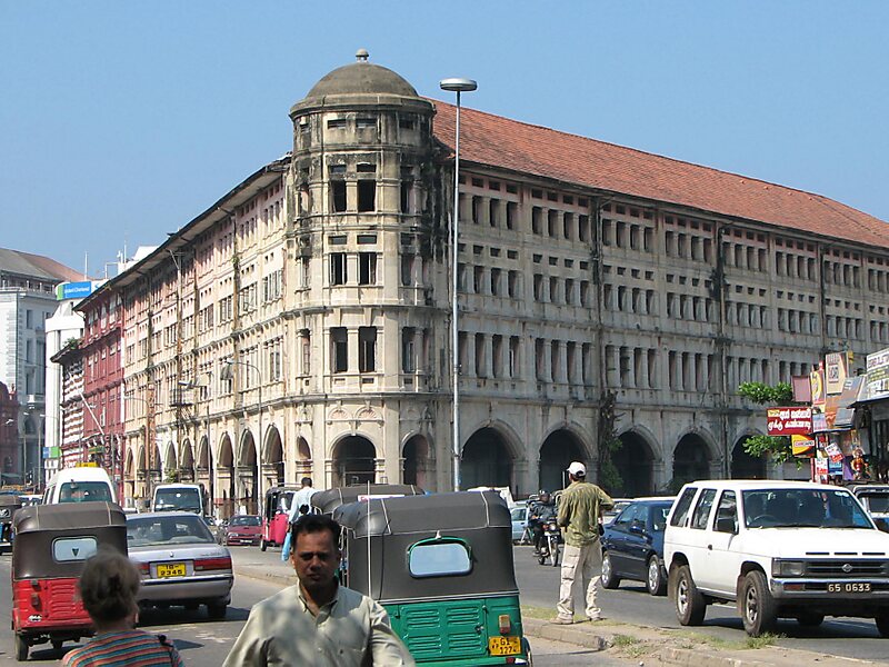 The entrance to the Pettah Market is marked formally by a tall monument in the centre of a roundabout, known as the Khan Clock Tower which was built by the family of Framjee Bhickajee Khan, an eminent Parsi family from Bombay who used to have substantial business interests in the country and who also owned the Colombo Oil Mills.