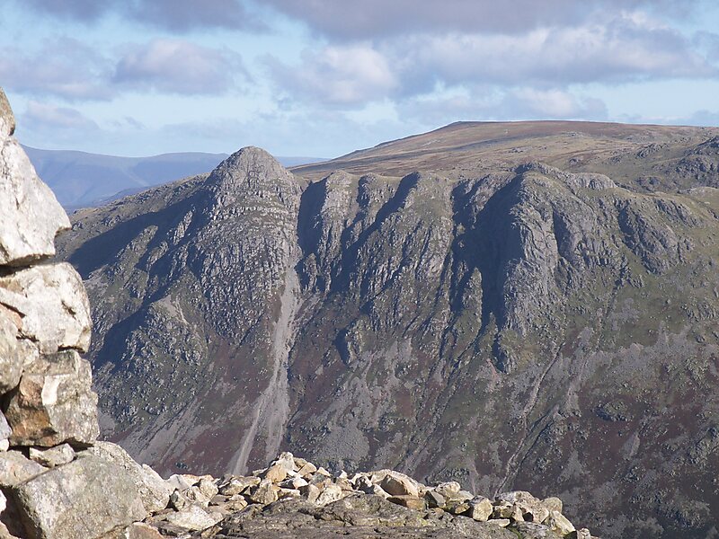 Pike of Stickle, also known as Pike o’ Stickle, is a fell in the English Lake District. It reaches a height of 709 metres and is situated in the central part of the national park in the valley of Great Langdale. The fell is one of three fells which make up the picturesque Langdale Pikes, one of the best-known areas in Lakeland. A "stickle" is a hill with a steep prominent rocky top, while a "pike" is a hill with a peaked summit, the name being therefore partly tautological.
