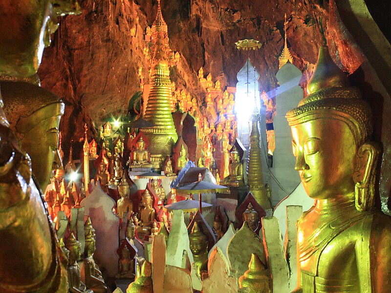 Pindaya is a town in the Shan State of Burma. It is located in the west of the state in Pindaya Township in Taunggyi District. Mainly famous for its limestone caves called Pindaya Caves where thousands of Buddha images have been consecrated for worship over the centuries, it is also one of the towns that host an itinerant market every fifth day.