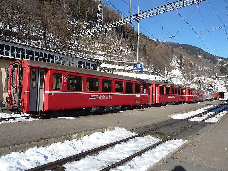 Poschiavo railway station is a railway station in the municipality of Poschiavo, in the Swiss canton of Graubünden. It is located on the Bernina line of the Rhaetian Railway. The station lies just outside the village of Poschiavo, and is linked to it by an avenue at right angles to the line.The station opened on 1 July 1908 with the opening of the Tirano to Poschiavo section of the Bernina line. The station building dates from 1962, and the station was modernised and remodelled between 2016 and 2019.The station has a five-story station building on one side of the line, whilst on the opposite…