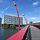 Python Bridge, officially known as High Bridge, is a bridge that spans the canal between Sporenburg and Borneo Island in Eastern Docklands, Amsterdam. It was built in 2001 and won the International Footbridge Award in 2002. The bright red bridge spans 90 meters and was designed by Adriaan Geuze of the architectural firm West 8. The bridge only carries pedestrians.