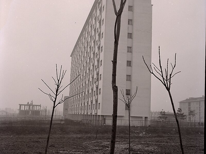 Construction began in 1946 and 1947, with the reuse of several heterogeneous housing units. In 1948, the first four-story prefabricated houses in Italy were completed in QT8. Much effort was put into the realization of green areas such as playgrounds, neighbourhood gardens, and a 375,000 m² city park. As a result, QT8 is one of the greenest districts in Milan.