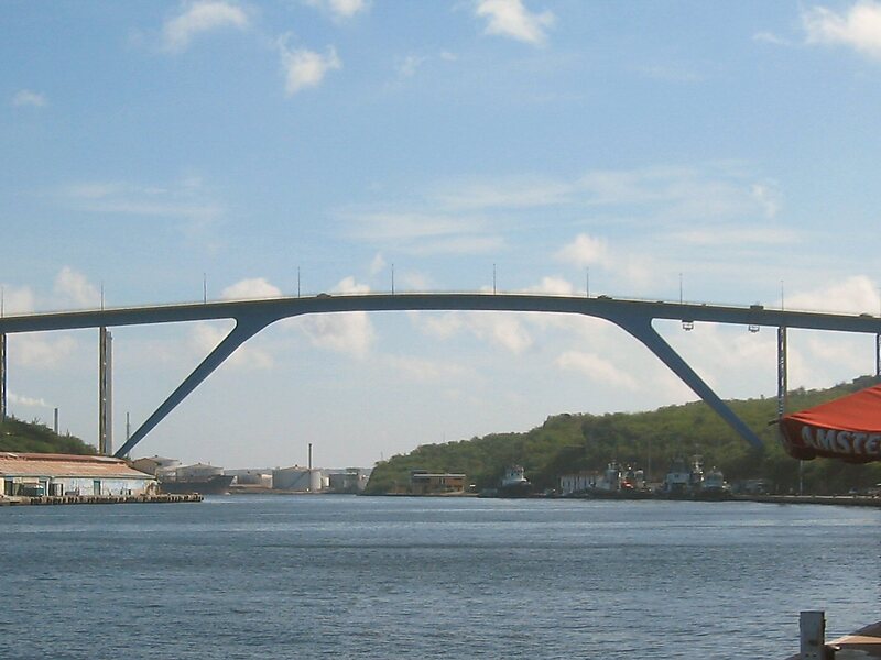 Koningin Julianabrug is a four lane road bridge across St. Anna Bay in Willemstad, the capital of Caribbean island country Curaçao, which is part of The Kingdom of The Netherlands. The bridge is named after Juliana of the Netherlands. While under construction the eastern part of the bridge collapsed in 1967 killing fifteen workers, and was replaced. The current bridge opened on Queen's Day, 30 April 1974.