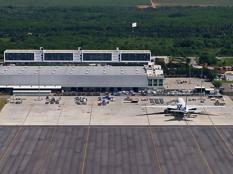 Rajiv Gandhi International Airport is an international airport that serves Hyderabad, the capital of the Indian state of Telangana. It is located in Shamshabad, about 24 kilometres south of Hyderabad. It was opened on 23 March 2008 to replace Begumpet Airport. It is named after Rajiv Gandhi, former Prime Minister of India. It is the only airport in India ranking in AirHelp's list of top 10 airports in the world.The airport has one passenger terminal, a cargo terminal and two runways. There are also aviation training facilities, a fuel farm, a solar power plant and two MRO facilities. As of 2019 March, RGIA is the sixth busiest airport by passenger traffic in India. The airport served about 21.4 million passengers in fiscal year 2018–19. The airport serves as a hub for Alliance Air, Blue Dart Aviation, SpiceJet, Lufthansa Cargo, Quikjet Cargo, TruJet and IndiGo. It is a focus city for Air India.