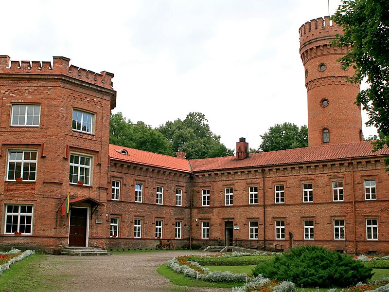 Raudonė Castle is a residential castle of the 19th century in Raudonė, Lithuania. Today it is used as a public school.