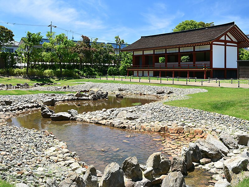 The garden and pavilions date to the same period of the Heijō Palace. The remains were excavated in the 1970s and restored.