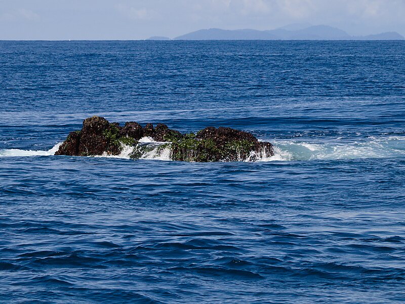 The limestone pinnacle rises from the sea floor of about 30 to 35 m above the surface at low tide. The horseshoe-shaped reef is known for its purple corals as well as diverse marine life ranging from small fish and harlequin shrimp to large pelagics like whale shark and manta ray.